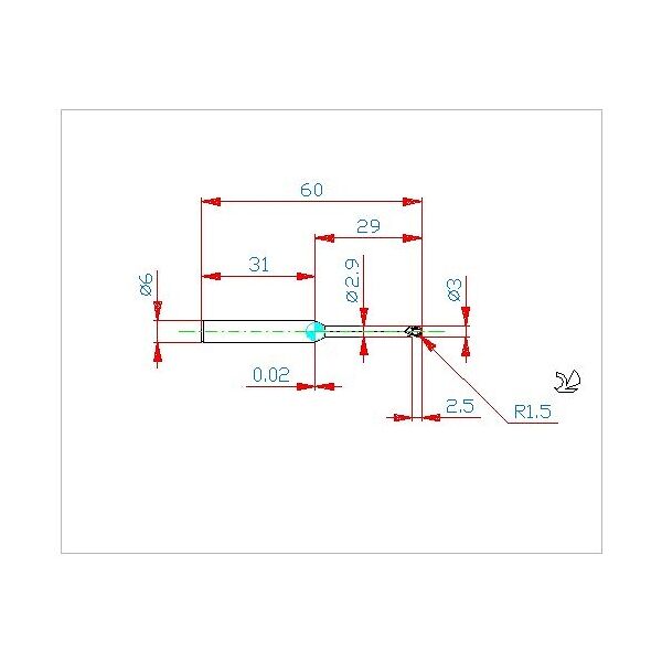 CNSC (GTC – Code für Kühlmitteleingabe): 0 CXSC (GTC – Code für den Kühlmittelaustritt): 0 Anzahl der Schneiden: 2 ZEFF (GTC - effektive Schneidkantenzahl der Fläche): 2 ZEFP (GTC – Anzahl der effektiven Schneidkanten für Peripheriegeräte): 2 APMX (GTC - Tiefe des Cut Maximum): 2.5 mmDN (GTC - Halsdurchmesser): 2.9 mmDC (GTC - Schnittdurchmesser): 3 mmDCON (GTC - Anschlussdurchmesser Maschinenseite): 6 mmOHX (GTC - überstehende Länge): 29 mmFHA (GTC - Spiralwinkel mit Nut): 30 DegreeLS (GTC - Schaftlänge): 31.019 mmCZCMS (GTC - Code für Anschlussgröße Maschinenseite): 60 OAL (GTC - Gesamtlänge): 60 mmEckenradius/Radius (Wiedereinstieg): 1,50 Schnittlänge (APMX): 2,50 Schaftdurchmesser (DCON): 6,0 Gesamtlänge (OAL): 60,0 Beschichtung: Coated Schafttyp: Cylindrical TCDCON (AGB - ISO-Toleranzklasse Anschlussbohrung Durchmesser Maschinenseite): h5 BESCHICHTUNG (GTC - Beschichtung): MEGACOAT HARD EX Differenzialabstand: No Durchmesser (DC): ø3,0 HAND (GTC - Schnittrichtung): R Werkzeugtyp: Radius end mills