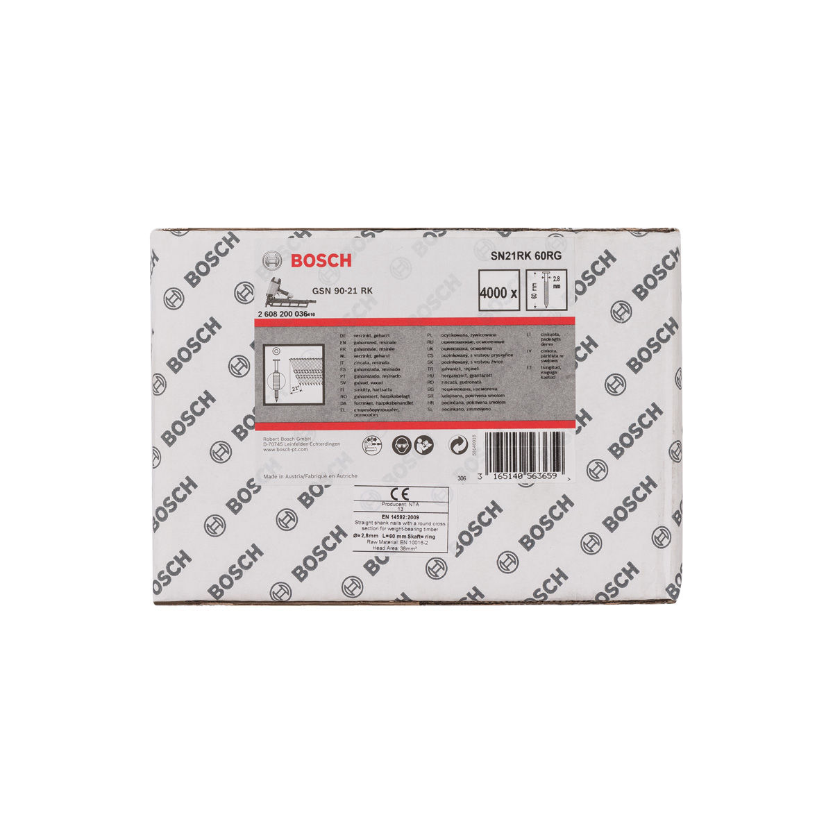 - (Version) Key RTB: Rundkopf-Streifennägel 21° für Indoor-Arbeiten in der Gebrauchsklasse 1 (DIN EN 1995-1-1) für Druckluftnagler von Bosch