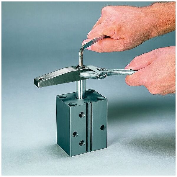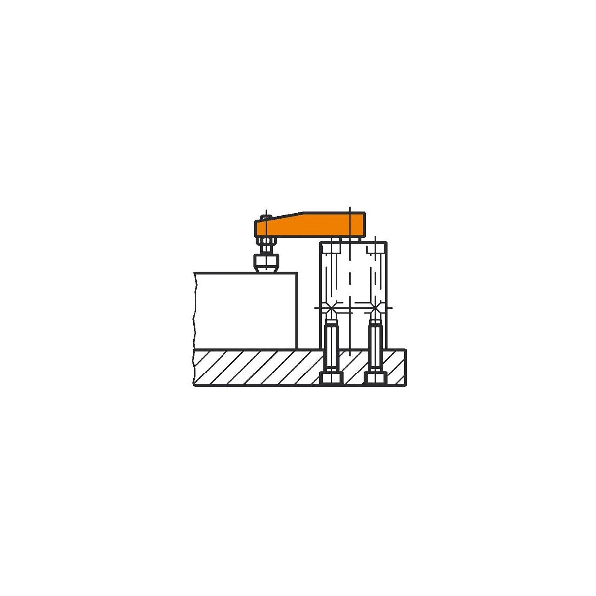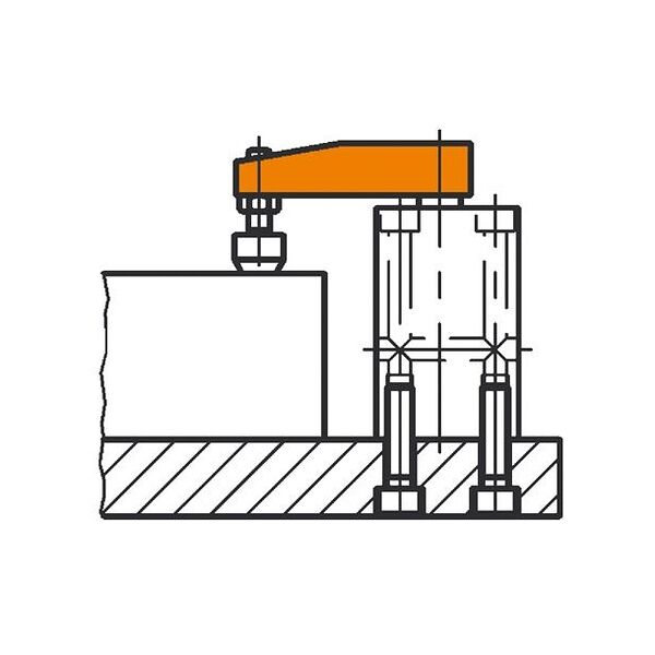 Spannarm, hochfeste Aluminiumlegierung, schwarz. Verschleißfeste Oberfläche durch HART-COAT®-Beschichtung, schweißpartikelabweisend. Einbaufertig mit Konus und Anschlussgewinde für Andrückschrauben Nr. 6880.