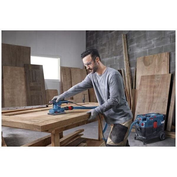 Excentrische schuurmachine GSS 20-18 A, Wie op zoek is naar een efficiënte schuurmachine voor comfortabel werken, heeft met de Bosch excentrische schuurmachine GSS 20-18 Professional precies het juiste gereedschap. Dankzij de lage trillingen, beperkt tot 3,2 m/s2, kunt u langdurig zonder vermoeidheid werken zonder dat uw hand gevoelloos wordt. De optimale balans van het gereedschap maakt bovendien moeiteloos schuren met één of twee handen in alle richtingen mogelijk. Deze schuurmachine biedt niet alleen veel comfort, maar heeft ook een ergonomische, antisliphandgreep voor moeiteloos werken. De Bosch excentrische schuurmachine GSS 20-18 Professional is ideaal voor meubelmakers en timmerlieden. U kunt er grote oppervlakken mee schuren voor het lakken, voegen gladmaken en randen afschuren. De Bosch excentrische schuurmachine GSS 20-18 Professional is een trillingsarm gereedschap met een optimale balans voor links- of rechtshandig werken en met een ergonomische, slipvaste handgreep. Bovendien beschikt hij over een stofdichte mechanica en een schakelbeveiliging. 1 x stofzak (1 619 PS1 104). 1 x stempelplaat (1 619 PS1 082). Karton