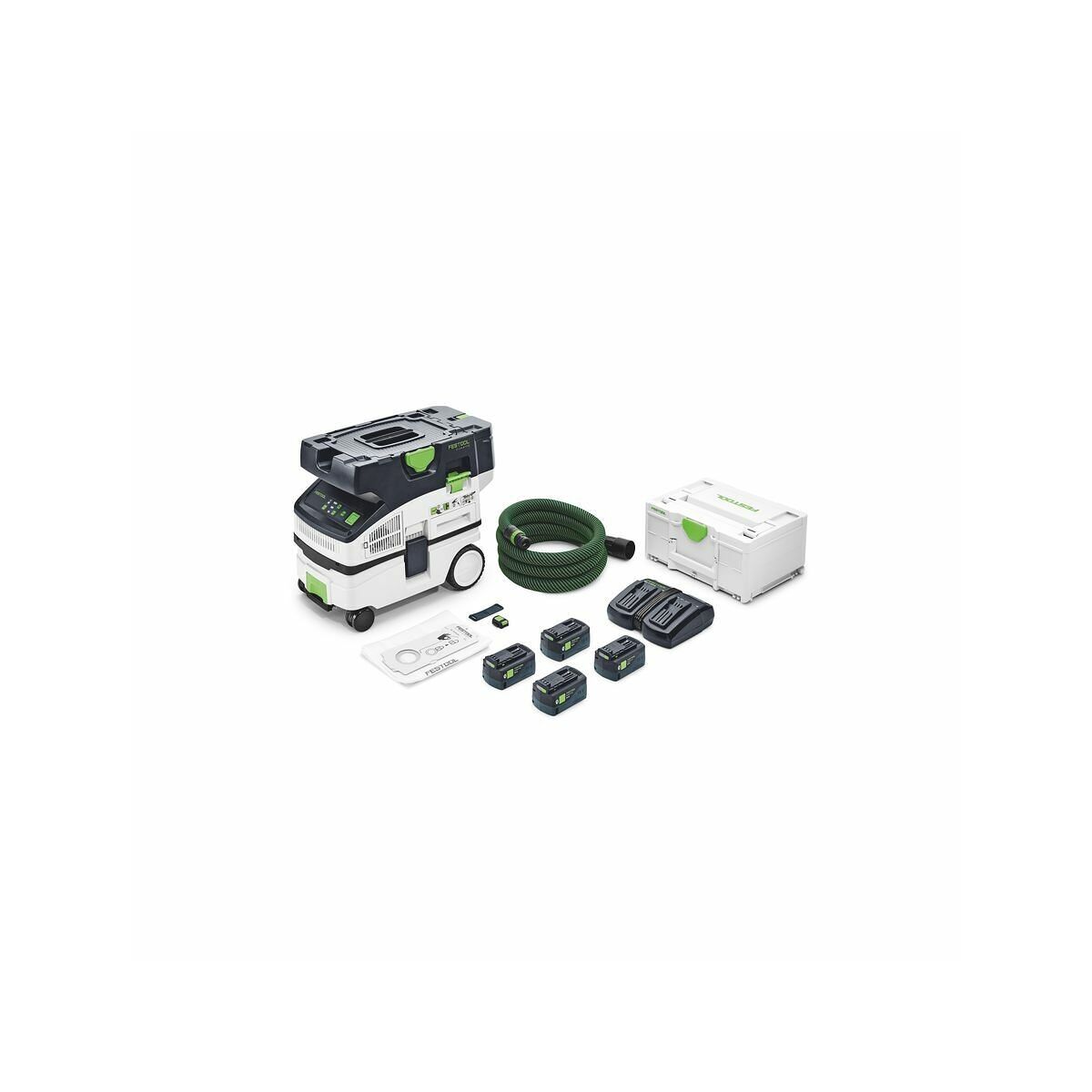 Leistungsstark: Durch die 36 V-Turbine vergleichbare Power wie ein Kabel-SaugerUnabhängig: Absaugen ganz ohne Steckdose mit 2 x 18 V (4,0/5,0/8,0 Ah) AkkupacksStaubfreie Akku-Anwendungen: Perfektes Zusammenspiel mit den Festool Akku-Werkzeugen für mobiles Sägen, Schleifen oder BohrenMobil: Durch kompakte Bauform und geringes Gewicht einfach zu TransportierenRegulierbar: Drei Stufen zur Einstellung der SaugleistungUnterbrechungsfrei: Mit vier Akkupacks und Schnellladegerät TCL 6 DUO in den meisten Akku-Anwendungen durchgängig ArbeitenPraktisch: Einschalten des Saugers über den Bluetooth® Akkupack oder die FernbedienungManuelle Abreinigung: Für die Wiederherstellung der Saugkraft und maximale Füllung des FiltersacksGesünder arbeiten: In der Staubklasse L