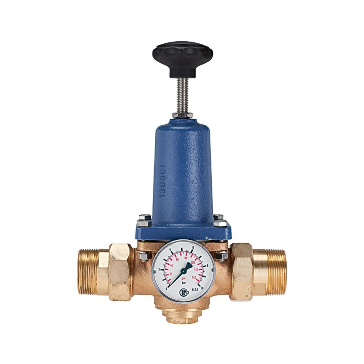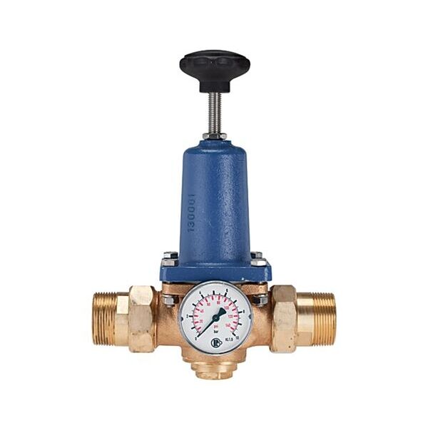 Regulador de presión para agua potable, sin DVGW, con manómetro incluido, R 1 1/2, rango de regulación 1, 5 - 6 bar, PE máx. 16 bar, presión previa mín. 2, 5 bar. Regulador de presión con válvula de membrana de un solo asiento con descarga y filtro incorporado. Especialmente diseñado para su uso en instalaciones domésticas de agua. Sin embargo, el dispositivo también se puede utilizar para todas las demás aplicaciones con agua, líquidos neutros y no adhesivos, así como para aire y gases neutros e inflamables.