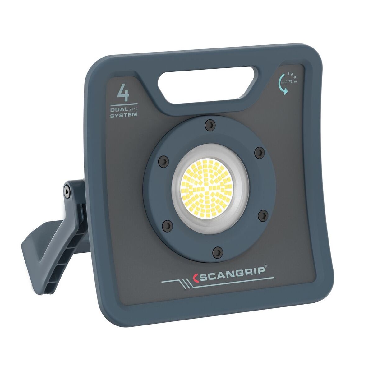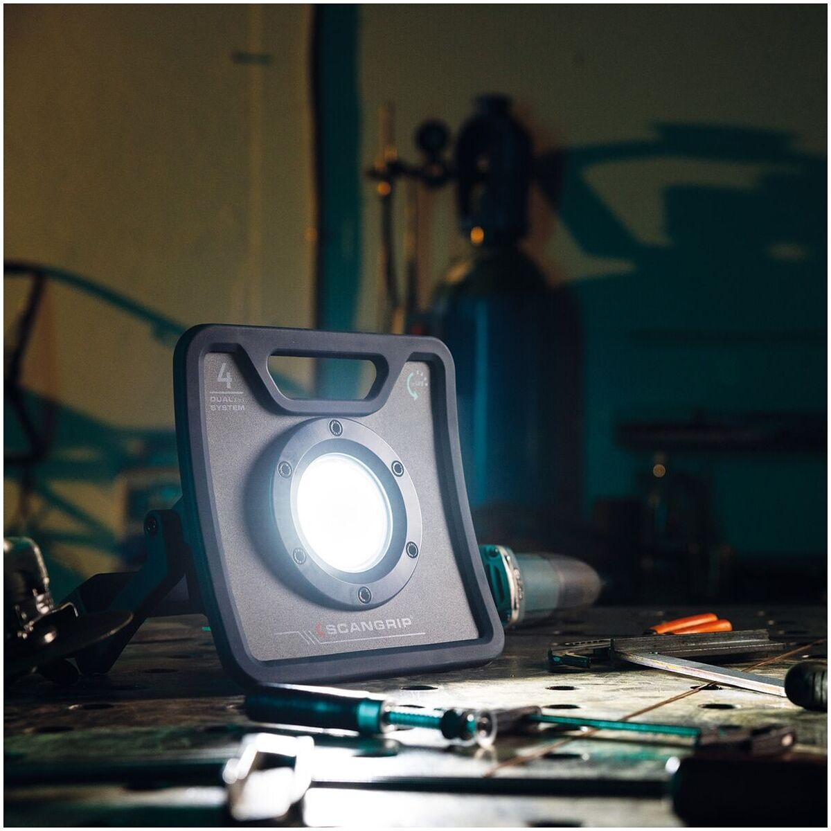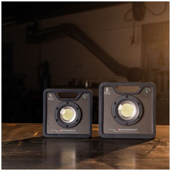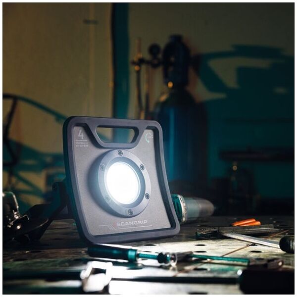 Equipped with an integrated carrying handle and flexible bracket for easy transportation and mounting on a SCANGRIP TRIPOD, the NOVA 4 C+R work light is versatile and suited for various working environments.