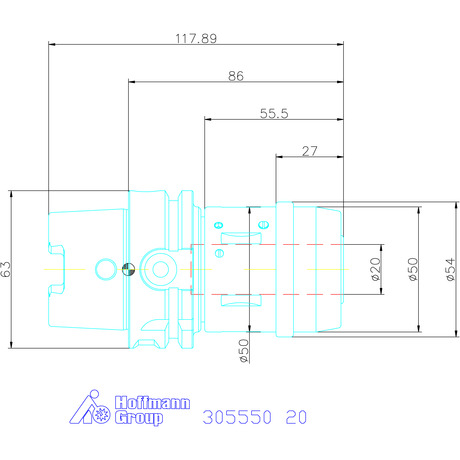 Heavy-duty chuck with security function, HSK-A 63, ⌀ D1: 20mm