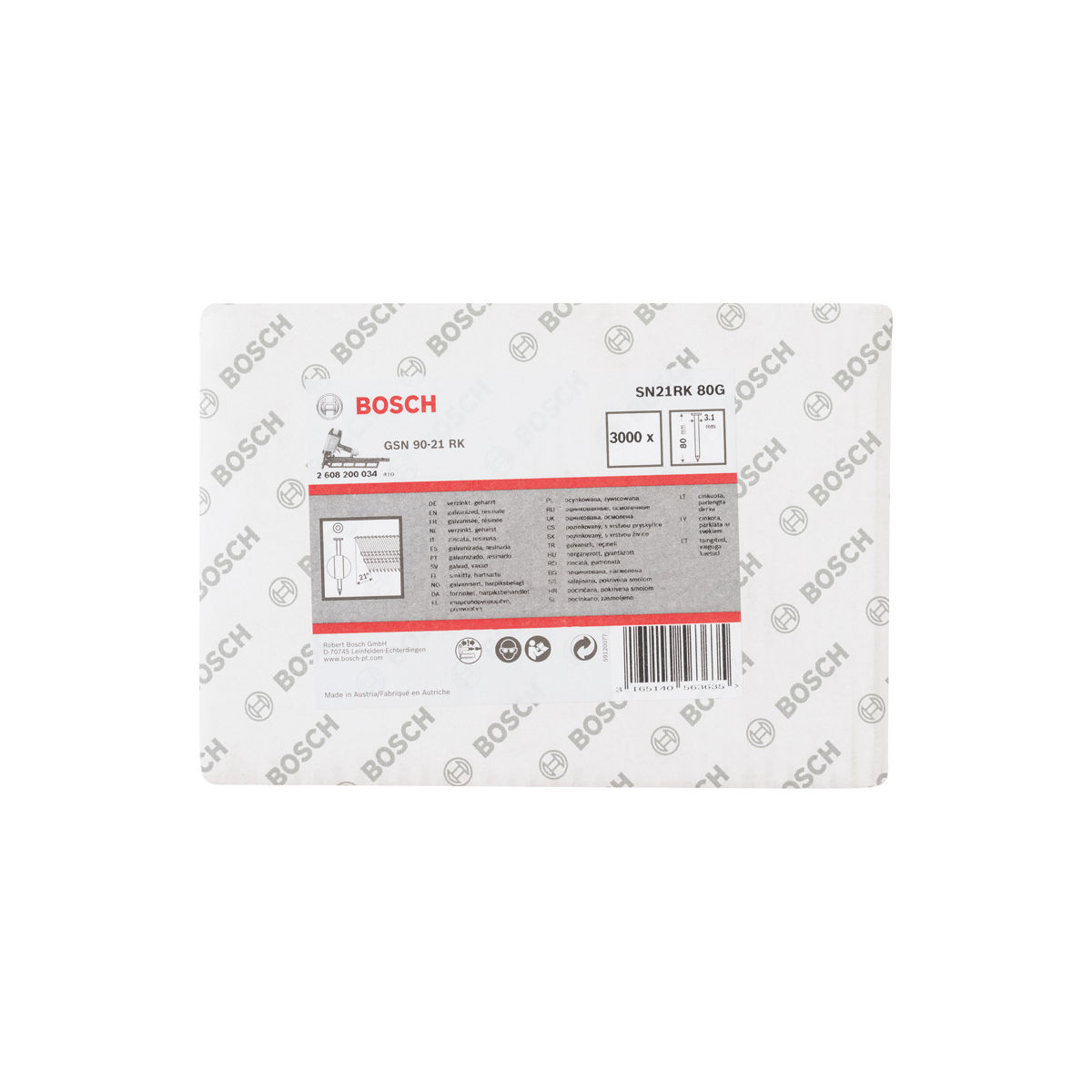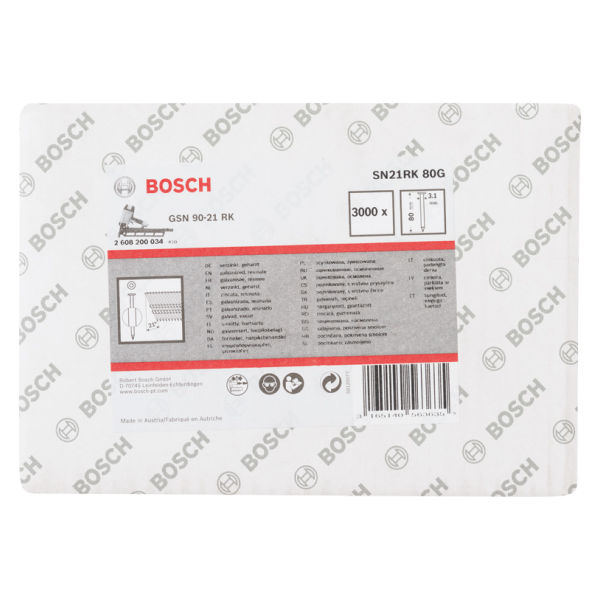 Die Rundkopf-Streifennägel 21° sind für Indoor-Arbeiten innerhalb der Gebrauchsklasse 1 (DIN EN 1995-1-1) konzipiert. Die Nägel sind zum Schutz vor Korrosion verzinkt. Eine Verharzung ermöglicht zudem, dass die Nägel einfacher in das Material gedrückt werden können, damit sie besser halten. Der 21°-Verbindungswinkel und die gerillte Schaftform stellen eine strapazierfähige und sichere Verbindung in Konstruktionen aus Holz, für das Dach, Kisten und Paletten sowie auf Tür-, Fenster- und Möbelrahmen sicher. Alle Nägel werden in Europa hergestellt und haben daher eine hohe, konstante Qualität. Sie sind für die Druckluftnagler von Bosch geeignet. Typ: SN21RK 80G, Schaftdurchmesser (D) mm: 3,1, Kopfdurchmesser: 7,0, Länge (L) mm: 80