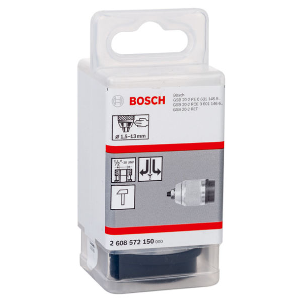 ″Das Schnellspannbohrfutter ist ein Bosch Systembohrfutter mit einer Kapazität von 1,5 bis 13 mm Durchmesser. Es spannt Bohrer mit minimalem Aufwand ein und erfordert keinen Schlüssel. Es ist mit Bosch Schlagbohrern kompatibel. Spannbereich mm: 1,513,0, Aufnahme, Bereich: 1/2″″ 20, Bohrfutter, Typ: Bosch-Systembohrfutter, Passend zu: GSB 20-2; GSB 20-2 RCE; GSB 20-2 RE; GSB 20-2 RET; GSB 21-2 RCT; GSB 21-2 RE; GSB 24-2 Professional; PSB 850; PSB 1000; PSB 1200 Auto-Lock.″