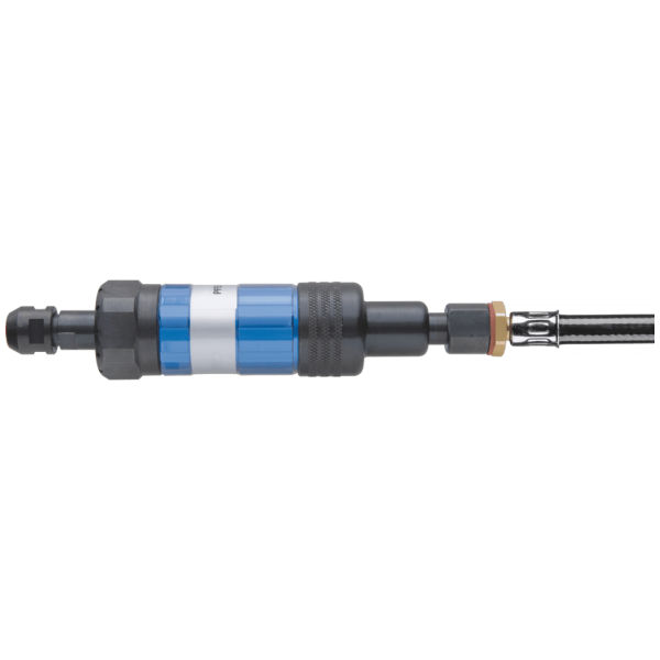 Der Antrieb ist mit einer Spannzangenwerkzeugaufnahme für Schaftwerkzeuge ausgestattet. Die Abluftführung befindet sich vorne. Der Antrieb muss mit Öl verwendet werden. Der Druckluftantrieb verfügt über eine Schiebeventil-Ausführung. 3 m Zuluftschlauch mit Gewindeanschluss1/4“ außen und Stecktülle mit Gewinde (STGI), Spannzange 6 mm, 2 Spannschlüssel.
