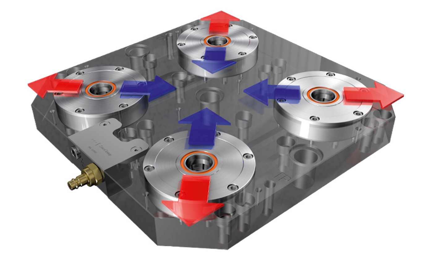 Conventional technologies use floating studs to compensate for thermal expansion – this produces particularly inaccurate results if workpieces are rotated around the central axis. Due to the central zero point, GARANT ZeroClamp provides absolute thermal symmetry at all times!