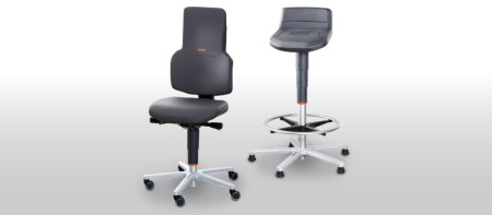 Swivel chairs, stools and standing stools for non-fatiguing work.