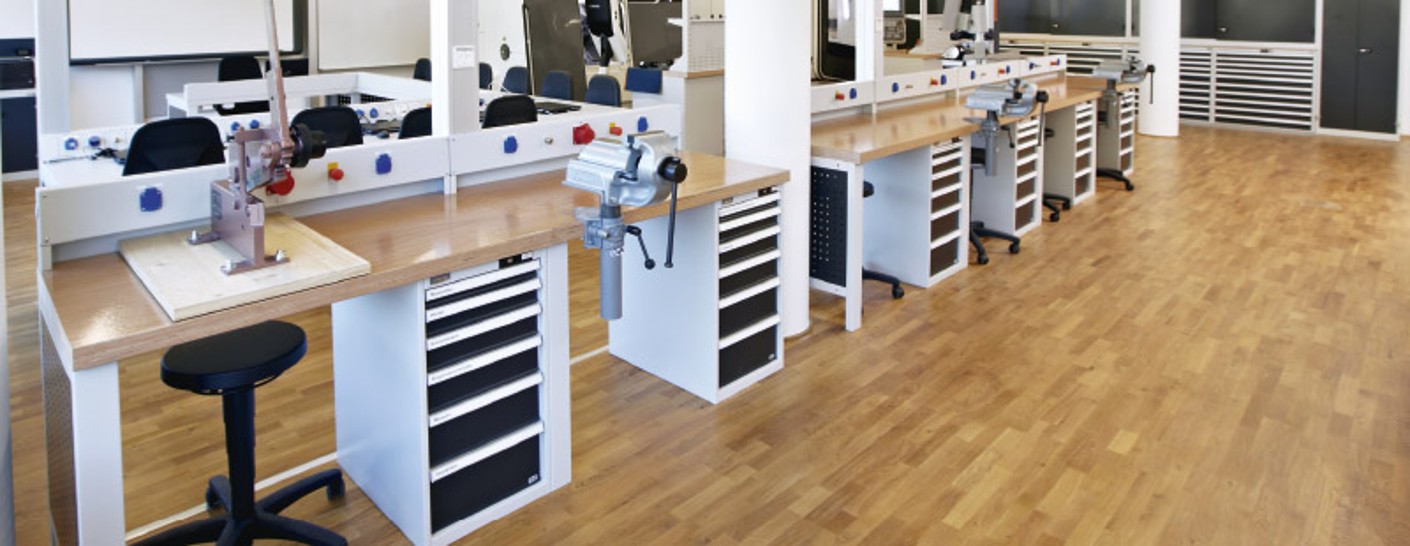 In modern training workshops and schools, the students and trainees need ergonomic, safe workstations. Workbenches should be robust, resistant and have an attractive design. After all, learning is not just easier, but also much more fun when the learning environment is pleasant and comfortable. Ergonomics also plays a key role in this respect, too. In order to prevent posture problems with potentially severe consequences, it is important to be able to adjust the workbench to the individual’s body size, especially when students and trainees are growing.