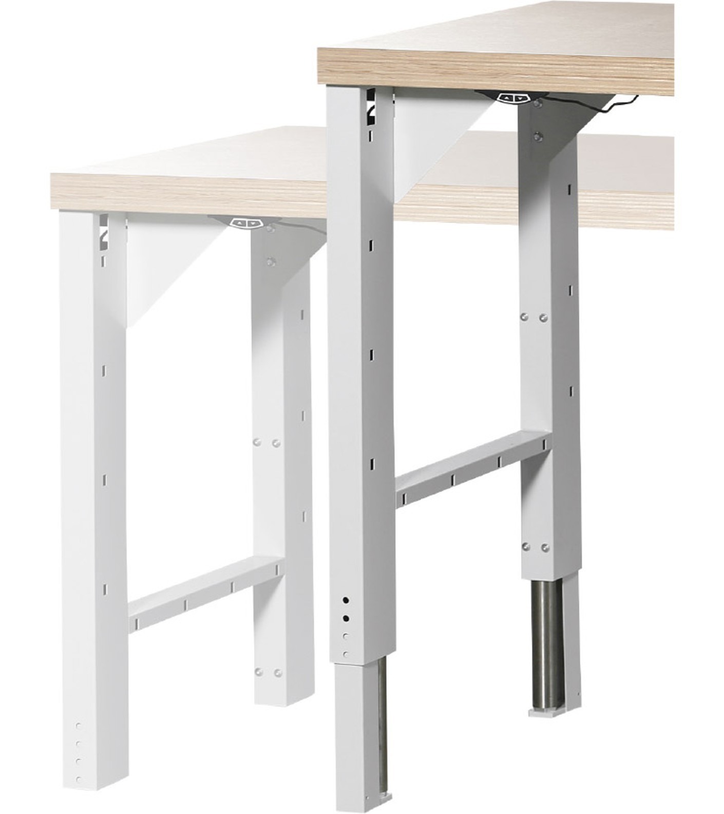 In order to meet the ergonomic requirements for workstations, we recommend selecting a height-adjustable workstation. The workstation can be adjusted either manually or electrically, depending on the model you choose. Height adjustment is ideal for shift work or for switching between a sitting and a standing workstation, for example. The table height can also be adjusted to suit work on components of different heights.