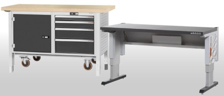 As a basic rule, work tables can be distinguished into workbenches with a projecting worktop and workbenches without a projecting worktop. The latter option is better suited for when you need to install workstations in a row or form work islands. The models are also differentiated into stationary and mobile models. With mobile workstations, you have the benefit of being able to manoeuvre them quickly into place. You can also choose between fully configured variants and workbenches that you put together yourself.