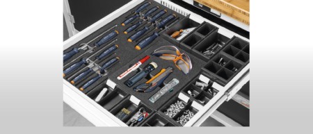 Divider material, rigid foam inlays and perforated panel accessories for a perfectly organised workstation.