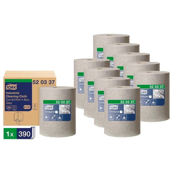 Tork industriële reinigingsdoeken zijn het perfecte alternatief voor poetslappen en huurtextiel. Dankzij de flexibiliteit en het zachte weefsel kunt u met de doeken ook zeer kleine oppervlakken en moeilijk te reinigen onderdelen schoonmaken zonder krassen te maken op het oppervlak. Ze zijn sterk genoeg om olie, vet en vuil op te nemen en kunnen met de meeste oplosmiddelen worden gebruikt. Ze passen in de efficiënte en veilige Tork vloer- of wandhouderdispensers en in de Tork Maxi binnenafrol- of combiroldispensers in de box voor uitnemen met één hand.
