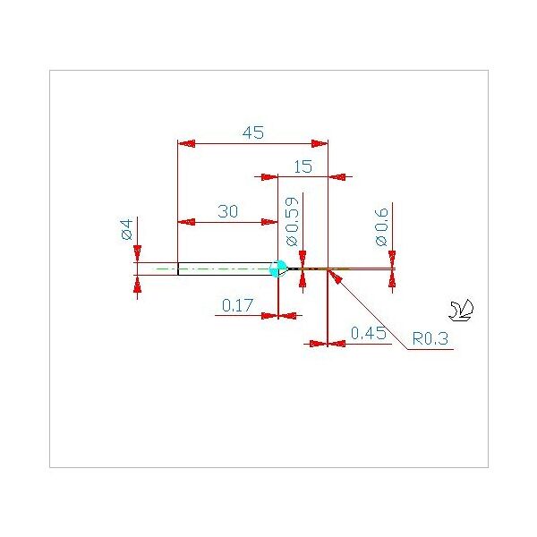 CNSC (GTC - Código de estilo de entrada de refrigerante): 0 CXSC (GTC - Código de estilo de salida de refrigerante): 0 APMX (GTC - Profundidad máxima de Cut): 0.45 mmDN (GTC - Diámetro del cuello): 0.59 mmDC (GTC - Diámetro de corte): 0.6 mmNúmero de flautas: 2 ZEFF (GTC - Face Effective Cuenta de vanguardia): 2 ZEFP (GTC - cuenta de vanguardia eficaz periférica): 2 DCON (GTC - lado de la máquina del diámetro de la conexión): 4 mmOHX (GTC - longitud sobresaliente): 15 mmFHA (GTC - Ángulo de la hélice de la flauta): 30 DegreeLS (GTC - Longitud de caña): 30.173 mmCZCMS (GTC - lado de la máquina del código del tamaño de la conexión): 40 OAL (GTC - Longitud total): 45 mmRadio de esquina / radio (RE): 0,30 Longitud de corte (APMX): 0,45 Diámetro de vástago (DCON): 4,0 Longitud total (OAL): 45,0 Recubrimiento: Coated Tipo de vástago: Cylindrical TCDCON (GTC - Clase de tolerancia ISO diámetro diámetro de la máquina lado): h5 RECUBRIMIENTO (GTC - Recubrimiento): MEGACOAT HARD EX Tono diferencial: No Diámetro (DC): ø0,6 MANO (GTC - dirección de corte): R Tipo de herramienta: Radius end mills
