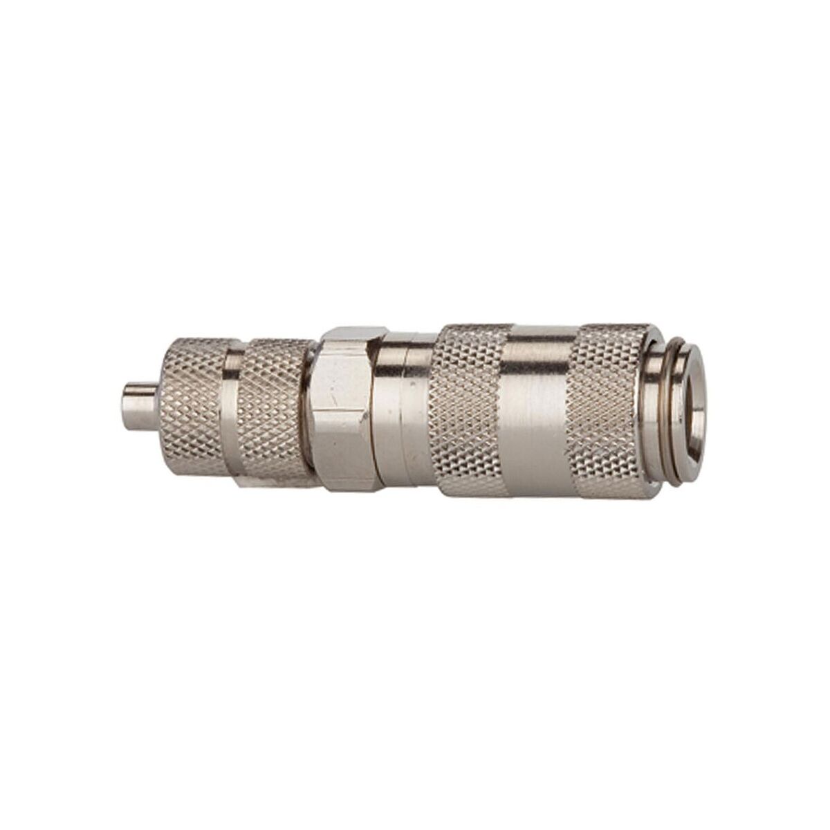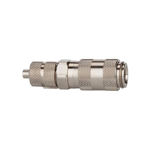 Cuplaj rapid NW 2, 7, ES 1.4404, racord pentru furtun 6x4, presiune de lucru 0-35 bar, temperatură mediului/mediului ambiant -15°C până la 200°C. Cuplaj rapid cu închidere pe o parte, cu o singură mână, cu dimensiuni extrem de reduse și trecere mare la o cădere de presiune redusă. Pentru a evita rănirea sau „efectul de bici”, recomandăm să țineți ferm cu o mână niplul de cuplare atunci când îl decuplați. Domenii de aplicare: Pneumatică, construcții de mașini și instalații, tehnică de măsurare, reglare și control, industria prelucrătoare, tehnică medicală, industria chimică/farmaceutică, industria auto, tehnologia alimentară, offshore.