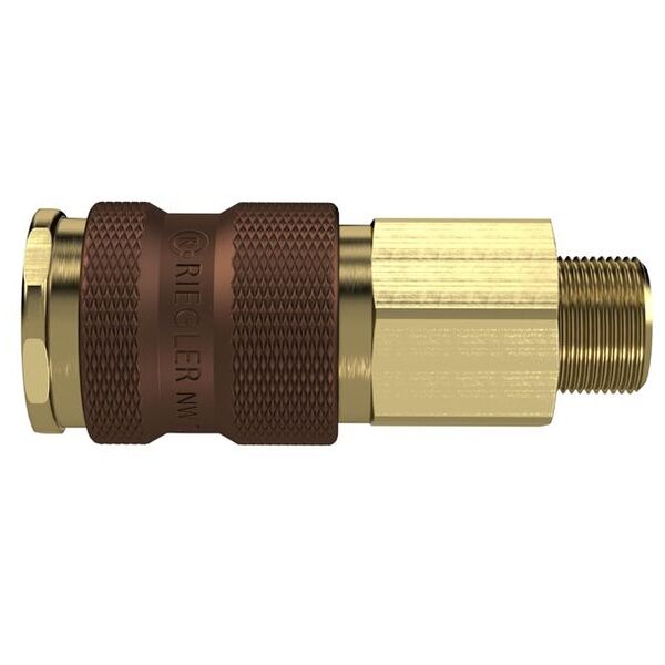 Cuplaj rapid inconfundabil NW 7, 8, alamă nefinisată, G 1/4 AG, maro, max. 35 bar, temp. mediu/mediu ambiant. -20 °C până la 100 °C. Cuplaj rapid cu o singură mână și debit mare de aer. Prin marcarea colorată a cuplajului și a conectorului, precum și prin profilele diferite ale cuplajelor dintre cele 4 culori diferite, diferite medii pot fi conectate în siguranță și fără confuzii într-un spațiu restrâns. Se pot conecta numai cuplaje și conectori de aceeași culoare. Domenii de aplicare: Pneumatică, construcții de mașini și instalații, tehnică de măsurare, reglare și comandă, industria prelucrătoare, tehnică medicală, industria chimică/farmaceutică, industria auto, tehnologia alimentară, tehnologia aeronautică.