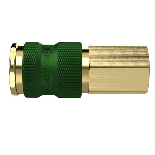 Cuplaj rapid inconfundabil NW 7, 8, alamă nefinisată, G 3/8 IG, verde, max. 35 bar, temp. mediu/mediu ambiant. -20 °C până la 100 °C. Cuplaj rapid cu o singură mână și debit mare de aer. Prin marcarea colorată a cuplajului și a conectorului, precum și prin profilele diferite ale cuplajelor dintre cele 4 culori diferite, diferite medii pot fi conectate în siguranță și fără confuzii într-un spațiu restrâns. Se pot conecta numai cuplaje și conectori de aceeași culoare. Domenii de aplicare: Pneumatică, construcții de mașini și instalații, tehnică de măsurare, reglare și comandă, industria prelucrătoare, tehnică medicală, industria chimică/farmaceutică, industria auto, tehnologia alimentară, tehnologia aeronautică.